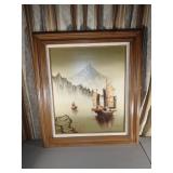 Description: Original Oil painting signed P. Wong. Chinese Junk Boats. THIS IS AN ORIGINAL PIECE, not a reproduction. The painting is from the 1950's. Stretched canvas with wood frame. 20x24 canvas.