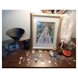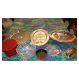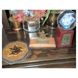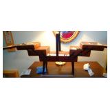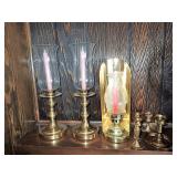 Description: Matching solid wood end tables and matching brass lamps. You also get the chargers with candles.