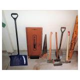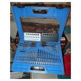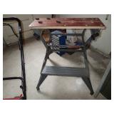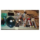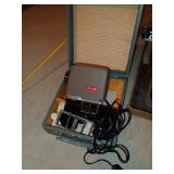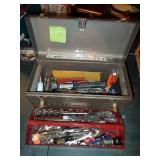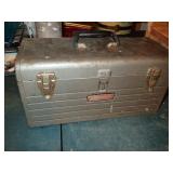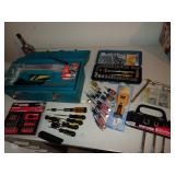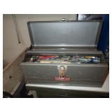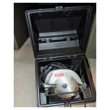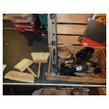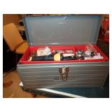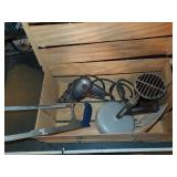 Description: crate filled with tools - Craftsman steel drill - saw - snake - and more.