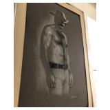 Make your heart go pitter patter stunning pencil drawing of young Bert Reynolds, shirtless, by renowned Hollywood makeup artist Fred Williams, b 4-10-22 d 5-11-90