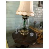 Gorgeous antique green and crystal parlor lamp in excellent condition