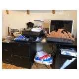 Mid Century Modern black desk with drawers on both sides, ball bearing drawer slides