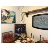 Several deer and elk mounts