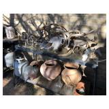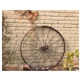 Several antique steel wagon wheels