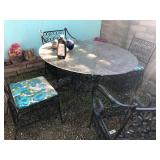 Nice round metal patio table with four matching chairs