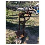Antique wood grinder sharpener with seat