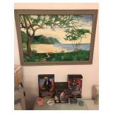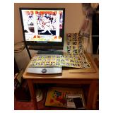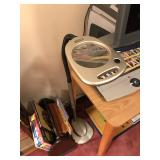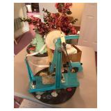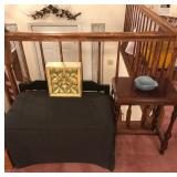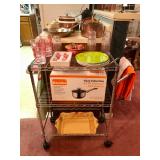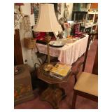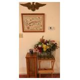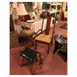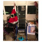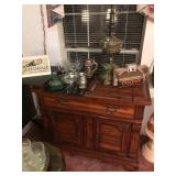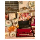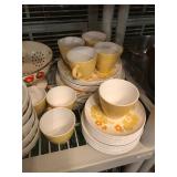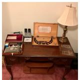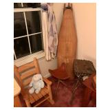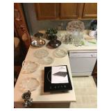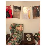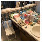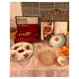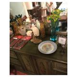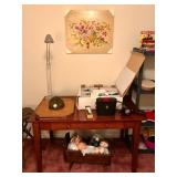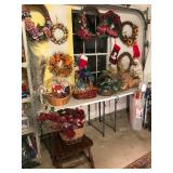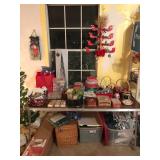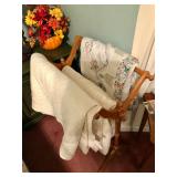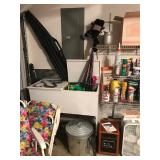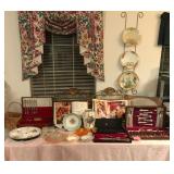 Nice décor; vintage decorative rugs; Daisy BB gun;marble kitchen décor; toaster oven; barware; Silver plate flatware ,TV trays , card table with four folding chairs; office chair; office supplies; books; lots of decorative pillows; Jewelry making supplies; scrapbooking supplies; nice bedding; nice kitchenwares and small appliances. Wind Tunnel vacuum; Women’s clothing; A large vice. Vintage snowshoes. Cute 70’s dishes (Corning), Nice Linens