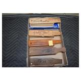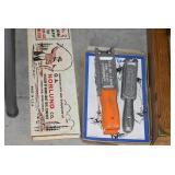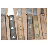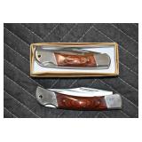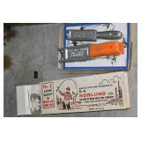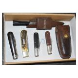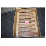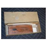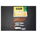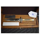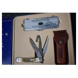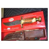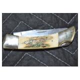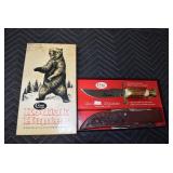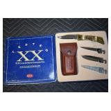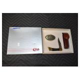 Knives to Sell at 9AM: 1. 1977 3 Dot Blue Scroll Series, 12 Knife Set with 4 Sheaths and 8 Pocket, Allegedly Cherry Framed by Jim Parker 2. Early Salesman 1920-1940 vintage Case XX Pen Knife, Knife Roll with Hang Tag 3. Case XX “Small Game Knife” with Stag Handle with Game Scene Box, Sheath, Man. NIB 4. Case XX 1880’s Style Boot Hunter Knife, NIB 5. Case XX “Chief Crazy Horse Commemorative Knife” with Sleeve, Serial #4203, NIB 6. Case XX Fur Takers of America 1982 Nation Knife, #115 of 300 Made with Box and Sleeve 7. Case XX Gator Knife Set, Matching Serial #0225, 1 Stag and 1 Bone Handle with Case and Sleeve 8. Case XX “The Rio Grand Camp Knife” #154 of 500 Made, Stag Handle, NIB w/ Certificate of Authentication 9. PA Game Commission 100th Anniversary Case XX Stag Handle Knife with Display Case #0873 10. Case XX (1940-1964) 14 Knife Case XX Dealer Counter Top Display with Knives, Case XX Reorder form in Back is Dated Nov. 8 ,1955 with Key 11. Schrade M-1530H Sheath Knife with Sheath NIB 12. Buck Mod No.107 Scout Sheath Knife with Sheath, NIB 13. Buck Mod. 120 Sheath Knife with Sheath, NIB 14. Buck Fisherman #114 Sheath Knife with Sheath, NIB 15. Case XX 11 Knife Blue Bone Knife Set with Display Case, Selling Set 16. Western Bowie Knife with Sheath 17. Spyderco FB01 “Moran Featherweight” Skinner Knife with Sheath, NIB 18. Buck #110 Folding Hunter, NKCA 2011 Club Knife with Sheath, NIB 19. Case XX Outlander Lightweight Wilderness Knife with Sheath, NIB with Sleeve 20. Case XX 7 Dot 1983 8 Knife Dealer Counter Top Display with Knives and Key 21. Case XX Porcelain 1 Sided Sign 22. 1st NKCA 1975 Kissing Crane Club Knife, 1st Year, Serial #41 of 1200 with Two Club Hats 22A- 22Z. Are NKCA Club Knives, a lot of Early Years, Buyers Choice 23A-23Z. Are NKCA Club Knives, a lot of Early Years, Buyers Choice 23AA- 23BB Are NKCA Club Knives, Buyers Choice 24A-V. NKCA Club Youth Knives 1990-2011, Selling Buyers Choice 25. Case XX USA (1965-69) Dealer Framed Knife Display Board, 54 Items, Excellent Shape 26A. Case XX Cheetah 5111 ½ LSSP Stag, Large Stamp 26B. Case XX Cheetah Small Stamp 5111 ½ SSP Stag 26C. Case XX 1976 Razor Edge 5111 ½ LSSP Stag 26D. Case XX 1977 Blue Scroll 5111 ½ LSSP Stag 27. Case XX Rough/ Slick Black, 6 Knives, Buyers Choice 28. Case XX Folding Hunter 3 Buyers Choice (Sag Reg Pull), (Red Bone High Pull Second Cut), (Green Bone Second Cut HP) 29. Case XX Buyers Choice 4 Knives 30. Case XX Royal Flush Set, Slim Trappers, 5 Knives with Presentation Board 31. Case XX Trappers, 3 Buyers Choice 32. Case XX Buyers Choice 7 Knives 33. 2 Winchester 5 Cell, 3 Cell Flashlights in Original Boxes, Buyers Choice 34. Case/Winchester Classic 62091, Winchester Doctor Knife, Selling Buyers Choice 35. Winchester Simmons Co., Be Your Own Barber Dealer Display with Original Glass, Rare, Great Shape 36. Winchester Razor with Original 2pc Box 37. 5 Case XX/ Crandalls Razors, Buyers Choice 38. 8 Razors, 1 Stone, Buyers Choice 39. 8 Razors in Complete, Leather Case 40. Case XX 10 Dot 1970 Dealer Display Knife Board Complete 103 Items, Buy Them When You Find Them 41A-Q. Remington Bullets Knives 1982-1996, Buyers Choice 42. Remington 5 Knives, NIB, Buyers Choice 43. Remington Early J-60 Knife Roll, Salesmen Roll 44. Remington Crown Stag Bowie with Sheath, NIB 45. Framed 1982 Remington Bullet Knife Promotional Print, Handout and Letter, 1 of 16 Made 46. 1982 Remington Bullet Knife in Case, Cracked with Info 47. Rare Remington Bullet Knife Patch 48. Remington Knives, (3) Buyers Choice 49. Remington Fine Cutlery Early Dealer 2 Sided Cork Display 50. 32 Knives, 1968 Case XX USA (65-69), Dealer Countertop Display Complete with Key, Dated April 1968 51. Remington Early Empty Dealer Countertop Display 52. Remington 5 Knife Dealer Countertop Display with Boxes and Key, This is the one with the 1988 Bullet Knife 53. Case XX Empty Knife Display 54. Buck Knives Empty Knife Display 55. Case XX Winston Cup 20th Anniversary Commemorative Mint Set, 1 of Only 1500 Produced, 21 Knife Set with Cherry Presentation Case, Race Cards and Brochure 56. Case XX Richard Petty, Red Bone #665 of 1000 with Display Box 57. Case XX Richard Petty, Blue Bone #1418 of 1500 with Display Box 58. Case XX Dale Earnhardt, 1998 Daytona 500 Knife in Display, Serial #485 of 1000 59. Case XX Kodiak Bowie Dale Earnhardt Display with 7 Time Sheath 60. Case XX 1988 Rainbow Trapper 5 Knife Set with Display Case and Original Shipping Box 61. Bulldog Knife Dealer Display, 9 Knives with Boxes with Key 62. Bulldog 5 Blade. Whittler with Exotic Handle with Letter of Authenticity on 11 Made 63. 14 Knives, Bulldog, Buyers Choice 64. Case XX Drakes Oil Well Stag Set #0299 of 1000 with Plaque and Sheath 65. Case XX 1985 Safari Set #145 of 500 with Plaque and Sheath 66. Case XX 516-5 USA Second Cut Rare, 9” with Sheath 67. WR Case & Sons, Hobo Set Rare Pre 1920’s 68. Queen Mason Dixon Club 2001, 1 of 55, Serial #26 69. Queen Little Boxwood Game Club 70. Queen Mason Dixon Knife Club, Pearl #44 71. Queen #75 Straight Knife, Queen Winterbottom Bone Knife with Sheath, Selling Buyers Choice 72. Large Fighting Rooster, #12 of 18, Stag Handle with Engraved Bolster 73. Fighting 6 Blade Rooster Knife, 1981 Pearl Congress, #76 of 600 Made 74. Diamond Edge Imperial Knife Co Counter Display, 11 Knives 75. Case XX 1970, 10 Dot Floor Dealer Display, 64 pc. 6 Drawers 76. Case XX Special Edition John Deere Knives, 10 Most NIB, Buyers Choice 77. Case XX Special Edition John Deere Knives, 8 NIB, Buyers Choice 78. Case XX Special Edition John Deere Knives, 8 NIB, Buyers Choice 79. Randall Miniature, Randall Knife Society, #1473, Original Shipping Box and Pouch, Appears to be a Miniature Mod. 14 80. Randall Model 12-13, Raymond Thorpe Large Blade with Original Box and Sheath 81. Randall Model 27, Stag Handle with Sheath 82. Early Schatt and Morgan Dollar Knife Oak Dealer Countertop Display Case, Empty 83. Gerber Legendary Blades Wood Dealer Sign 84. Case 