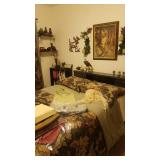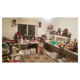 This house is overflowing! So much jewelry, over 100 rings of all styles and boxes of earings,and necklaces etc. Collector of bears, angels, bells, and so much more. Beautiful mid-century bedroom set. Washer and Dryer. A 1970's style bar with all the shot-glasses and fun things that go with it. Resin native American sculptures and reproduction western items to display and hang on the wall. Holiday decor galore! One room with nothing but Christmas decorations. Patio furniture and a Garage full a little shed full. Massive amouts of stuff! Holliday decor galor! Very few Antiques at this sale.