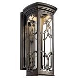 Kichler 49228OZLED LED Outdoor Wall Mount. One of the easiest ways to add beauty and character to your home is with outdoor lighting fixtures. This Franceasi 22-inch outdoor wall lantern (model 49228OZLED) delivers clean styling and classic lines, while offering an aura of mystery and elegance to any space. Pair it with other members of the Franceasi outdoor lighting family, which includes flush mount and hanging pendant models in addition to wall lanterns. Castle windows throughout Europe were designed with a wide variety of tracery, mullions and stonework elements. The old bronze panels of the Franceasi lighting family were created with these windows in mind, with the intricate details creating delightful shadow patterns on adjoining wall surfaces and walkways. This outdoor wall lantern measures 22 inches high, 8-1/2 inches wide, has an extension of 10-1/2 inches, and rises 7-1/2 inches from the center of the wall opening. NEW in Packaging. Please Preview. Retail $316.80 ***Winning Bidders Must Inspect This Item Before Leaving The Building to Qualify for a Refund.*** (45) |