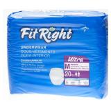 Medline FIT23005Z FitRight Ultra Protective Underwear, 28-40" (Pack of 20) x 3. FitRight Ultra Protective Underwear features a body- contoured anatomical design, soft non-woven fabric, soft anti-leak guards and an ultra absorbency core. The acquisition and dryness layer wicks moisture away from the skin and into the core for ideal dryness and leakage protection. Linear embossing technology distributes fluid throughout the core for exceptional dryness and containment. Size printed on the backsheet identifies product size for a better fit andimproves ease of care. NEW in Packaging. Please Preview. Retail $14.94 each ($44.82 Total) ***Winning Bidders Must Inspect This Item Before Leaving The Building to Qualify for a Refund.*** |