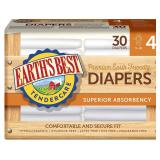 Earth's Best Diapers - Size 4-30 ct. Earth's Best Diapers* Packaging May Vary*Earth's Best TenderCare Chlorine-Free Diapers are , chlorine-free diapers made from absorbent materials that are never treated with chlorine bleach agents. Their breathable sides, moisture barrier cuffs and hook and loop closures ensure ease of use. Earth's Best brand knows that a healthy lifestyle means more than eating pure and nutritious foods. They offer a full line of clean, chlorine-free diapers, wipes and body care products made with organic ingredients for infants and toddlers.Features:Hypoallergenic, chlorine-free, latex-free, dye-free, fragrance-free. Naturally absorbent material such as corn and wheat Comfortable and secure fit soft and stretchy refastenable panels prevents leakage NEW in Packaging. Please Preview. Retail $24.54 ***Winning Bidders Must Inspect This Item Before Leaving The Building to Qualify for a Refund.*** |