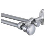 Kenney KN85056 Simone Double Curtain Rod Satin Nickel, 66"-120" Assorted Curtain Rods. Create a layered look with the Simone double curtain rod by Kenney. The double metal rods have a Satin Nickel finish with matching decorative finials. The set includes two 5/8 inch diameter telescoping rods that adjust to fit your window with the font rod projects 4 ⅜" from the wall and the rear 1 1/2". the double mounting brackets have an attractive closed-loop euro design. The Simone double curtain rod can be used with light, medium and heavy weight curtains. Layering your curtains enhances privacy and provides more insulation year-round. This versatile double curtain rod is ideal for living rooms, bedrooms and dining rooms. Mounting hardware and instructions are included. NEW in Packaging. Please Preview. Retail $34.95 ***Winning Bidders Must Inspect This Item Before Leaving The Building to Qualify for a Refund.*** |