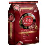 Purina ONE SmartBlend True Instinct with Real Turkey & Venison Adult Premium Dog Food, 27.5 lb. Bag Inspired by a dog's natural instinct to choose nutrient-dense foods, our nutritionists created Purina ONE SmartBlend True Instinct with Real Turkey & Venison Adult Dry Dog Food. This 30% protein formula starts with real turkey as the #1 ingredient, along with real venison and other high-quality ingredients, to provide the protein and energy active dogs need. Each meal has double the tender meaty morsels your dog loves compared to Purina ONE Lamb & Rice, combined with crunchy kibble to tempt your dog NEW!((BB 2021) MSRP: $37.99 |