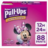 Pull-Ups Learning Designs for Girls Potty Training Pants, 12-24 Months (14-26 lbs.), 88 Ct. (Packaging May Vary) Weight Recommendation: 14 to 26 Pounds. Disposable training diapers with leak protection you can trust - day or night Helps teach toddlers the concept of easy up and down in a pull up diaper - girls training pants that fit like cotton underwear Exclusive Disney graphics with Minnie Mouse & Jessie and Bullseye that fade when wet. Includes bonus activities for your toddler Diaper pants with easy open sides can be refastened for an adjustable fit, quick check and easy changes NEW! MSRP: $38.98 |