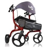 Hugo Mobility Explore Side-Fold Rollator Walker with Seat, Backrest and Folding Basket, Garnet Red**BRAND NEW
