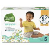 Seventh Generation Baby Diapers for Sensitive Skin, Animal Prints, Size 5, 92 Count (Packaging May Vary)**BRAND NEW