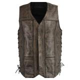 M Boss Motorcycle Apparel BOS13501 Mens Leather Distressed Black and Beige 10 Pocket Vest with Exterior Gun Pocket - 2X-Large**BRAND NEW