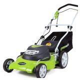 GreenWorks 20-Inch 12 Amp Corded Electric Lawn Mower 25022 Durable 20-Inch Steel Deck Powerful 12 Amp Motor 3-In-1 (Mulching, Side Discharge, and Rear Bag) 7-position height adjustment offers a range of cutting height from 1-1/2 to 3-3/4 inches for all grass types This item is NEW! No refunds after the item has left the building. Please come Preview! Retail:$ 202.49. |