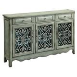 Coaster 950357 60" Accent Cabinet with Three Doors, Scrolling Trellis Overlay, Three Drawers and Bronze Hardware in Antique Green Finish This item is NEW! No refunds after the item has left the building. Please come Preview! Retail:$ 438.16. |
