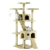 Go Pet Club 72" Cat Tree 72 High Beige Cat Tree Material: Compressed wood, faux fur, sisal rope For medium to large size cat Assembly instruction and tools included * Overall Size : 33"W x 22"L x 72"H * Base Board Size : 23.5"W x 21.5"L * Size of Big Condo : 18"W x 12.5"L x 11.75"H * Size of Top Condo : 12"W x 12"L x 10"H * Top 3 Perches : 12.75"W x 12.75"L x 2.25"H This item is NEW! No refunds after the item has left the building. Please come Preview! Retail:$ 69.00. |