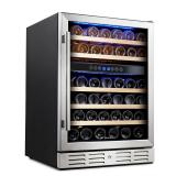 This Kalamera 24'' 4.9 cu.ft 46 Bottle refrigerator delivers even cooling at just the right temperature, with a dual zone structure that cools each area to the appropriate chilling temperature. The compressor is silent, so it won't disturb your family or guests, and it has low vibration, so it won't disturb the wine either.