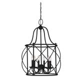 Sea Gull Lighting Turbinio 22.25 in. W x 31.25 in. H 6-Light Textured Black Hall/Foyer Medium Rustic Cage Metal Indoor Pendant