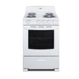 SUMMIT brings outstanding value to small kitchens with fully featured electric ranges in 24 in. W fits. RE2411W is a 220-Volt electric range designed for 24 in. wide spaces. One 8 in. and three 6 in. coil burners include removable chrome drip pans for easy cleaning.