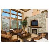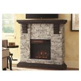 To bring warmth and inviting ambiance to your home, add this Highland mantel with an infrared quartz electric fireplace to any room. The realistic, gray, faux stone body is accented by a Brushed Dark Pine top, base and corbels. Providing supplemental zone heating for up to 1,000 sq. ft. and showcasing stunning flame effects, this electric fireplace is sure to create a welcoming environment.