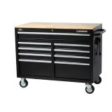 Husky 46 in. W 9-Drawer, Deep Tool Chest Mobile Workbench in Gloss Black with Hardwood Top