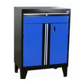 This Sandusky Base Cabinet with Drawer is part of the Sandusky Modular Storage System. Base Cabinet features a storage drawer with cam lock and bottom cabinet with 1-adjustable shelf, plus bottom shelf. Full length pull handles and a push button locking handle on door (2-keys included) for security. Shelves hold up to 200 lbs. capacity of evenly distributed loads. 4 Leveling guides keep cabinet leveled on uneven floors. Durable all welded steel construction is strong enough to withstand harsh temperatures, humidity and all of the dents and dings usually associated with garages.