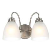 Hampton Bay Hamilton 2-Light Brushed Nickel Vanity Light with Frosted Glass Shades
