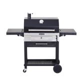 The KitchenAid Cart-Style Charcoal Grill in Black offers 851.1sq. in. of cooking space spread across its upper-level warming rack and main-platform grilling deck. Features include heavy-duty cast iron cooking grates that are matte finish porcelain-coated so pre-seasoning is not required.