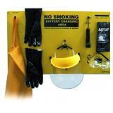 Complete Forklift Battery Protective Handling PPE Kit Complete forklift battery protective handling PPE kit Kit comes complete with Neoprene safety handling gloves, safety goggles/eye protection, face safety shield/eye protection, apron, flashlight, battery hydrometer, battery handling mounting board Forklift batteries contain sulphuric acid which is a hazardous material and the MSDS information requires personnel to wear particular PPE This complete forklift battery handling personal protective safety equipment kit mounts conveniently on any wall so that everything is within easy reach Protect worker's health and safety and help prevent workplace hazards NEW! MSRP: $119 No refunds after the item has left the building. |