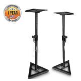 Pyle Speaker Stand, Black (PSTND35.5) SONOS SPEAKER COMPATIBLE: Pyle designed a pair of speaker stand according to the shape, aesthetics and black coat finish color of the Sonos speaker play 1. It works with both the SONOS PLAY 1 and PLAY 3 speakers in any orientation HEIGHT ADJUSTMENT: It features a telescoping center column that is adjustable ranging from 26''- 52'' inch high and secure it with a sturdy pin. The rugged and durable metal construction assures structural stability SQUARE PLATFORM: The SONOS speakers can be easily place at the 9'' inches square platform with 2mm thick and non-slip pad. It has 90 lbs weight capacity for each speaker stand. Perfect for any home theater space THREE-POINT TRIANGLE BASE: It has equal 18''x 18'' x 18'' base plate to support solidity and safety of the Sonos speaker. It also has floor spikes with an equal heavy weight distribution makes the base extremely stable and secure NEW! MSRP: $45 No refunds after the item has left the building. |
