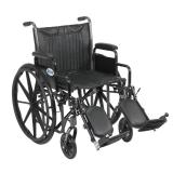 Drive Medical Silver Sport 2 Wheelchair, Detachable Desk Arms, Elevating Leg Rests, 20" Seat Powder-coated silver vein steel frame Embossed vinyl upholstery is durable, lightweight, attractive, and easy to clean Urethane tires mounted on composite wheels provide durability and low maintenance 8" front casters adjustable in three positions Padded armrests provide additional comfort Carry pocket on backrest provides additional convenience Comes with elevating leg rests with tool-free adjustable length riggings Plastic foot plates with heel loops on footrests Push-to-lock wheel locks Overall Product Length: 42" Overall Product Height: 36" Primary Product Material: Steel Primary Product Color: Black Closed Width: 12.5" Seat Width: 20" Seat Depth: 16" Seat To Floor Height: 17.5" 19.5" Back Of Chair Height: 16" Number Of Wheels: 4 Seat To Armrest Height: 8" Armrest Length: 10" Armrest To Floor Height: 27.5" Rear Wheels: 24" X 1" Brakes: Push To Lock Wheel Brakes Casters: 8" Folded Dimensions: 42" X 12.5" X 36" Overall Length W/ Riggings: 42" Wheelchair Weight Without Riggings: 42 Lbs Product Weight Capacity: 350 Lbs Actual Product Weight: 45 Lbs Overall Product Width: 28" NEW! MSRP: $216 No refunds after the item has left the building. |