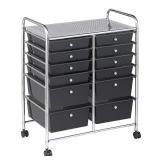 ECR4Kids 12-Drawer Mobile Organizer, 31.75" H, Smoke Organize Your Space — 12 compartments to store art supplies, makeup cosmetics, toys or tools Durable Design — sturdy metal frame with translucent drawers that install and remove easily Ready to Roll — four heavy-duty wheels (2 locking) to easily move from living room to garage Built to Last — metal shelf provides additional workspace and overall holds up to 50 lbs Stylish Storage — outfit any area such as home offices, dorm rooms, beauty salons or classrooms Overall Dimensions — 24.75" L x 15.4" W x 31.75" H, 17 lbs Drawer Dimensions — large: 11.25" L x 15.4" W x 2.75" H — small: 11.25" L x 15.4" W x 2.75" H NEW! MSRP: $84 No refunds after the item has left the building. |