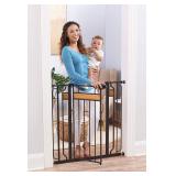 Regalo Easy Step Extra Tall Walk Thru Baby Gate, Bonus Kit, Includes 4-Inch Extension Kit, 4 Pack of Pressure Mount Kit and 4 Pack of Wall Cups and Mounting Kit, Black EXTRA TALL: Stands 41 Inches Tall. Expands to fit openings between 29-36.5 inches wide. Please be sure measure your opening prior to purchase to ensure proper fit EASY TO USE AND SET UP: Pressure mount design that is quick to set up. Please note, before installation there will be a gap between the gate latch and the frame which is NOT a defect and it is NOT bent. This gap will be eliminated once installed ADJUSTABLE: Includes a 4-inch wide extension kit and 4 pressure mount spindle rods. Perfect for doorway, hallway and bottom of stair use. Gate can quickly be removed out of the opening for easy storage DURABLE AND CONVENIENT: The all steel design is durable and convenient with a walk-through door. Certified to both JPMA and ASTM standards SAFETY CERTIFIED: Includes multiple safety-lock features, four wall cups for added security and mounting hardware. Perfect for children 6-36 months. Great for PETS TOO NEW! MSRP: $44 No refunds after the item has left the building. |