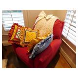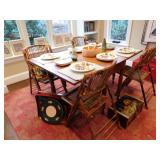The following is just some of the beautiful items in this estate sale. Love seat, Bar Stools, Lamps, Rugs, End Tables, Lots of Hand Embroidered pillows, Small Tea Pot collection, Pictures, Vintage Drop Leaf Table, Books, Mirrored Hall Tree, Linens, Quilts, Nightstands, Beds, Vintage Accent tables, Designer Evening Gowns & Purses, Designer Fabric and Drapery, Jewelry, Vintage Writing Desk, Patio Furniture, 2 Dark Blue Overstuffed Accent chairs with matching Ottoman, 2 Nesting Table sets, Very nice Henkel Harris Cherry Dining Table with 8 Chairs, Silver Plate Items, Wood Bunk Beds, Mid Century Modern Cabinets and much more! |