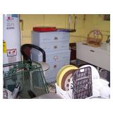Contents to include: Mahogany dining room set, sleeper sofa, Victorian settee and chairs, marble top table, grandfather clock, stereo system. speakers, roll top desk, flat screen televisions, vcr/dvd players, desks, chairs, loads of tools, dressers/chests, books, paper ephemera and photos, dollhouse and miniatures, outdoor furniture, scooter chair, household misc and more! |