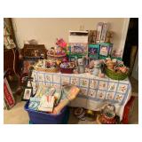 ~ THERE ARE LITERALLY OVER A 1000 ITEMS IN THIS SALE ~ ~ ALONG WITH A LARGE SELECTION OF WOMAN’S CLOTHING!! ~ FURNITURE: Haverty High Back Loveseat & Ottoman, Crate & Barrel Leather Sofa, Bernhardt Dining Room Table - 6 Chairs - 2 Leaves - Pads, Berhnardt China Cabinet, Bernhardt Rolling Bar, Very Nice Corner Cabinet, Beautiful Kitchen Island, Beautiful Matching Hutch, Beautiful Matching Table - 4 Chairs - Leaf, Serpentine Buffet, Duncan Phyfe Style DR Table & 4 Chairs, Vintage Vanity - Mirror - Bench, Vintage Wardrobe, Hall Tree, Couches, Sofa Table, Fan Back Wicker Chair, Vintage Round Side Table, Striped Armless Side Chairs, Queen Anne Style Armed Side Chair, King Size Electric Bed, Queen Size Beds, Dressers & Night Stands, Armoires/Wardrobes, Chest of Drawers, Ottomans, Bench, Jewelry Armoire, Carved Walking Stick, Small Rattan Side Table, Office Desk, Patio Furniture, Metal Umbrella Stands, Table & Floor lamps, Decorative Throw Pillows, Bicycle Shaped Wine Rack, Many Framed Pictures, Wall Décor, OTHER GOODIES: Nice Collection of Costume Jewelry (Sabika & Sarah Coventry), Kings Crown Large Bowl - Cake Plate - Tumblers, Fenton Carnival Marigold Cherry Orange Tree Bowl, States Metal Pewter Items, Milk Glass Items, Large Set of Pfaltzgraff “Grapevine” Dishes, Large Set of Christmas Dishes, Crystal Glasses, Vases, Candlesticks & More, Silverplate Champagne Goblets, So Many Very Nice Serving Dishes, Watermelon Cookie Jar, - Tea Pot - S&P, Princess House “Fantasia” Serving Dishes, Bordallo Pinheiro Serving Dishes (red & green) Vintage Pyrex Nesting Bowls (4 pc), Vintage Frosted Pastel Purple Bowl Set, Avon Cranberry Glass Dishes, Vintage “ROMEO” Ashtray, L. Kersh of London Framed Motorcycle Art, Numerous HOMCO Figurines, Numerous HOMCO “Demin Days” Figurines, Norman Rockwell Figurines, “Hand Made in Scotland” Small Figurines, Palm Tree Decorative Items, German Stein, Chicken Bowls, Sanitary Dairy Milk Bottle, Kitchen Aide Mixer & Attachments, Small Kitchen Appliances, Pots & Pans, So Many Kitchen Items!! Lock & Lock Plastic Ware, “Wrap Master” 3 pc Set, Porcelain Dolls & Others, Easter Decorations, A Lot Nice of Christmas Decorations, Wedding Gown, King & Queen Size Bed Linens, Bath Linens, AIWA “Super T Bass” Stereo System, Minolta XG-1 Camera, Polaroid One Step Camera in Box & #600 Film, Posture REST Model S Massage Therapy Machine, ZUMBA Exercise Kit, Board Games, Luggage Sets, Roll of Vintage Wallpaper, “Man From UNCLE” 1966 Book, Old Children’s Books, Sega Game Gear Set, Singer Sewing Machine & Cabinet (model 1516), CLOTHING & SUCH: Valentino Purse, Dooney & Bourke Purse, Coach Purse & Others, Fur Jackets, Coats, Jackets, Dresses, Skirts, Blouses, Shoes & Boots, STILL HAVE THE GARAGE TO DO!! KEEP CHECKING IN & THANKS FOR LOOKING!!!!!!!!!!!!