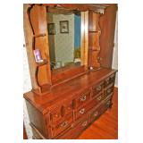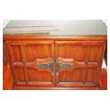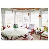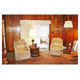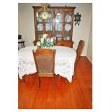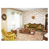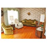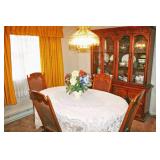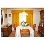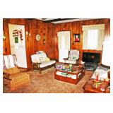 Furniture: Cedar Chest, Hooker Martinsville VA Seven (7) Piece Mediterranean Dining Room Suite (Table, Four (4) Chairs, Server, Two (2) Piece Hutch), Pair Broyhill Nite Stands, Single Bed, Modern Chest Of Drawers, Modern Five (5) Piece Bedroom Suite (Bed, Two (2) Nite Stands, Dresser w/ Mirror, Chest Of Drawers), Three (3) Piece Pine Upholstered (Sofa, Loveseat, Chair), Retro Renaissance Style Upholstered Sofa, Circular & Octagon End Tables, Retro Upholstered Chairs, Modern Square Marble Top Stand, Modern Lighted Curio Mirror Back Cabinet, Modern C-Roll Top Desk, Retro Table Lamps, Table Lamps, La-Z-Boy Recliners, Circular Table & Chair Set, Wooden Picnic Table & Benches, Wooden Patio Chairs & Tables, Amana Washer & Dryer (New 2018), Metal Double Door Cabinet
