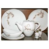 Antiques/Personal Property: Ladies Costume Jewelry (Bangle Bracelets, Earrings, Necklaces, Pins, Bakelite Earrings), Men's Jewelry (Cuff Links, Tie Tacks, Rings, 18 & 14 Karat Rings, Hamilton Wrist Watch), Jewelry Armoire, Lionel Travel Train, Kerosene Lamp, Dietz Barn Lantern, Linden Barometer, Lefton China Teapot & Handled Pitcher, Sango Larchmont Dinner Set, Oriental Saki Set, Three (3) Gallon Crock, Pressed Glass (Banana Dish, Footed Dish), Lefton & Schmid Figurine Music Boxes, Vintage Suitcase, Vintage Luggage, Gorham Sterling Silver (Pair Salt & Pepper Shakers, Candle Holders), Hall Handled Pitcher, Manger Scene, Glass Swan On Nest, Brass Candle Holder w/ Hurricane Globe, Silver-Plate (Flatware, Compotes, Serving Dishes & Bowls, Platters), Lenox (Swan, Handled Basket, Bowls), Snow Babies Figurines, Small Kitchen Electrical Appliances, Hamilton Beach Milkshake Maker, Kitchen Utensils, Pots, Pans, Kettles, Dyson Upright Sweeper, Kodak Camera, Hand & Bath Towels