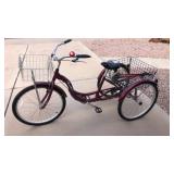 WHAT IS IN THIS AUCTION? This online auction features two Antique hump-back trunks. Vintage sled, horse-drawn plow, plastic lighted Santa; luggage. Schwinn adult tricycle. Furniture such as two dining tables, vintage spool chest crafts table, s-curve roll top desk and chair, light wood bedroom suite, SW styled hutch. Fiesta china. Frigidaire fridge, Admiral washer and dryer. Magnavox and Polaroid TVs, a Singer, two Brother sewing machines and a White Thread Overlock machine. Limited edition signed ART by Marcus Pierson, Stephen Morath and De La Nuez; SW / Cowboy themed wall art and mirrors. Women's costume jewelry and sterling silver earrings. Collectible - two dollhouses, doll furniture; crockery; MaCayo mug collection; a Bosson; Textiles - Hudson Bay, Pendleton, Mexican blankets and quilts. Yard and Garden such as decor, pots, electric lawn mower, outdoor storage shed and much more!