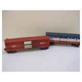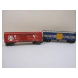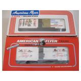 Two American Flyer Trains S Gauge Christmas Train Cars including A/F Christmas BC 2000 6-48340 and 2002 Christmas Boxcar 6-48346, AC Gilbert Co/Lionel 1lb3oz