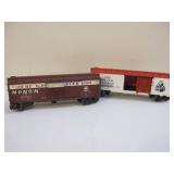 Two Postwar Lionel O Scale Train Cars including Bangor & Aroostook BAR 6464275 Boxcar and The Katy MKT 6556 Stock Car 1lb 7oz