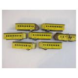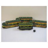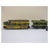 Vintage Set of Metal Marx Seaboard Green and Yellow Diesel Engines and Caboose 4lb5oz