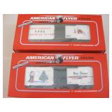 Two American Flyer Trains S Gauge Christmas Train Cars including 2018 Christmas Boxcar 6-44129 and A/F 2017 Christmas Boxcar 6-48423, new in boxes 1lb8oz