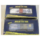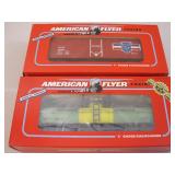 Two American Flyer S Gauge Advertising Train Cars including A/F Bordens Flatcar 6-48524 and UPS Boxcar 6-48370, new in boxes 1lb4oz