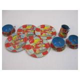 Vintage Tin Tea Set with pitcher, 3 cups and saucers and 4 plates 6oz